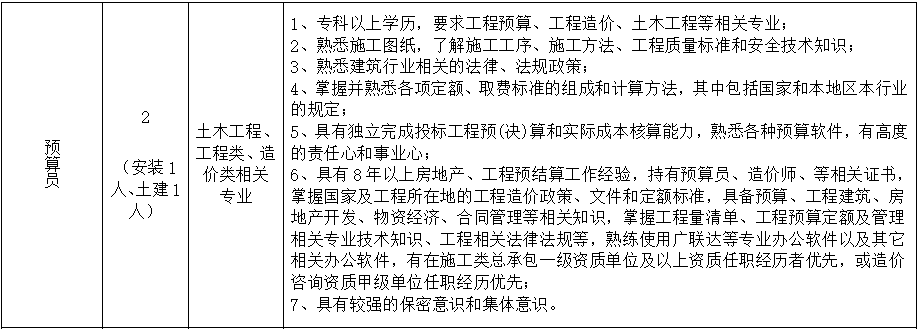 因公司业务增加,目前项目技术人员短缺,为了满足公司业务发展需要及在建项目顺利进行,现面向社会诚聘项目专业技术人员。